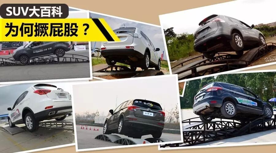 今天咱就聊聊SUV撅屁股这事儿,头图那种情况估计大家都见过,为了说明SUV通过性怎么怎么牛,一言不合就找俩铁架子开始爬,而你会发现其中的蹊跷之处,“哎?这些车怎么都撅着屁股在爬。”