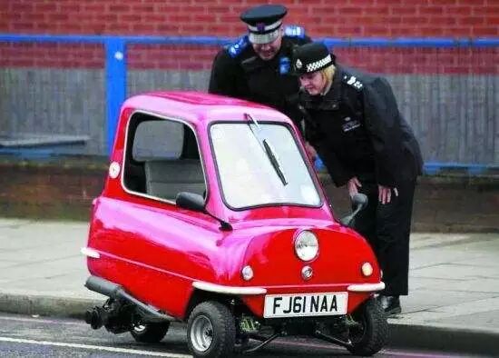 其实前面那几个车也不够cute,这款才是真正的萌中之王—Peel P50!这也是载入吉尼斯世界纪录里的最小的车。Peel P50由Cyril Cannell 设计、Manx Peel公司在1963年生产。当时出厂价格为200英镑。车长仅为1.34米,高度为0.99米,整备质量为59公斤。不过可能会有人说它的安全可靠性何在呢?反正英国法律却允许这款轻量级三轮小型汽车合法上路。