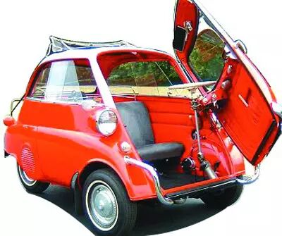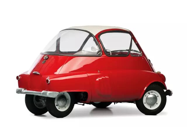 这个Q版圆圆的跟鸡蛋一样造型的车,它真的是宝马的。只不过当时生产的年代环境所限,所以对车型的要求和需求就变得不那么一样了。上世纪50年代二战结束后,一切都很萧条。当时BMW就想应该造款小车来满足当时的消费能力。起初这款车也不是宝马造的,而是由来自意大利Isomoto公司设计的Isetta,后来宝马把它的知识产权等等都买了过来,于是在1955年就看到了挂有BMW标志的Isetta 250!
