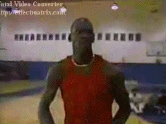 早期乔丹训练时连续左手投篮...(左手投篮可以练习左手对篮筐的感觉..而不适合用于实战..)