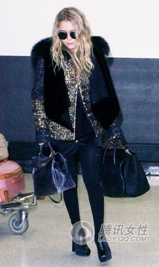 皮草也能穿出层次感,明星玛丽·凯特·奥尔森在金色外套上面加了一件黑色毛领坎肩,金色不仅与皮草的华丽感旗鼓相当,还弥补了坎肩面料华丽感欠缺的不足。外套里面的长款上衣又为下身的打底裤做了良好的过渡。