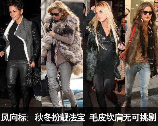 没有大衣的厚重,又能兼顾保暖和时尚,在单衣外加一件毛坎肩或是毛披肩是明星天气刚刚转冷的绝佳服装搭配技巧选择。