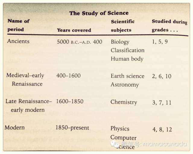 基于所有知识的相互关联性,思维引导应该基于世界历史这个大纲一步一步进行。该书中把整个十二年的学习分为世界史四个部分的三段重复学习。详见下表:
