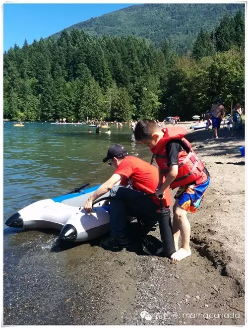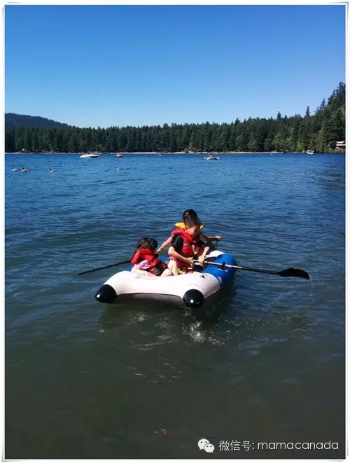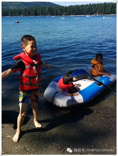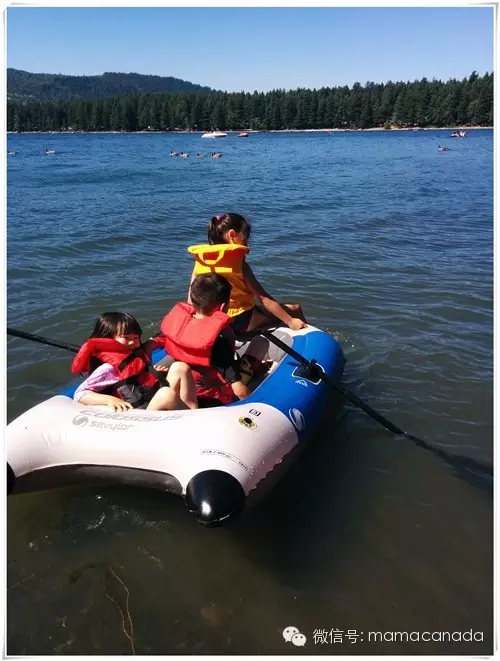 因为这次主要是小朋友自己划船,而且距离湖边不是很远,所以沃尔玛里面的20元左右的小橡皮船就足够了,从打气到把船拖到湖边,都是小朋友们自己动手完成!