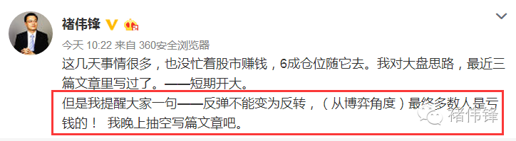 我想和大家说的是,反弹的结果,必定是多数人亏钱出来的。 这个结论,我在上一波反弹时就说过。