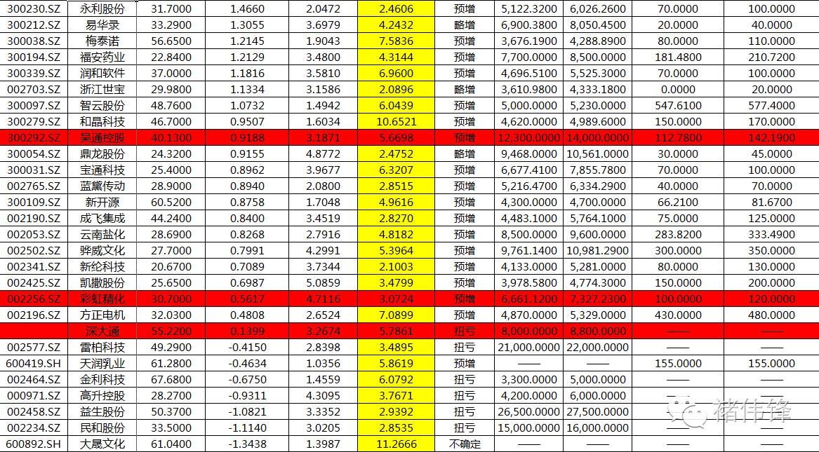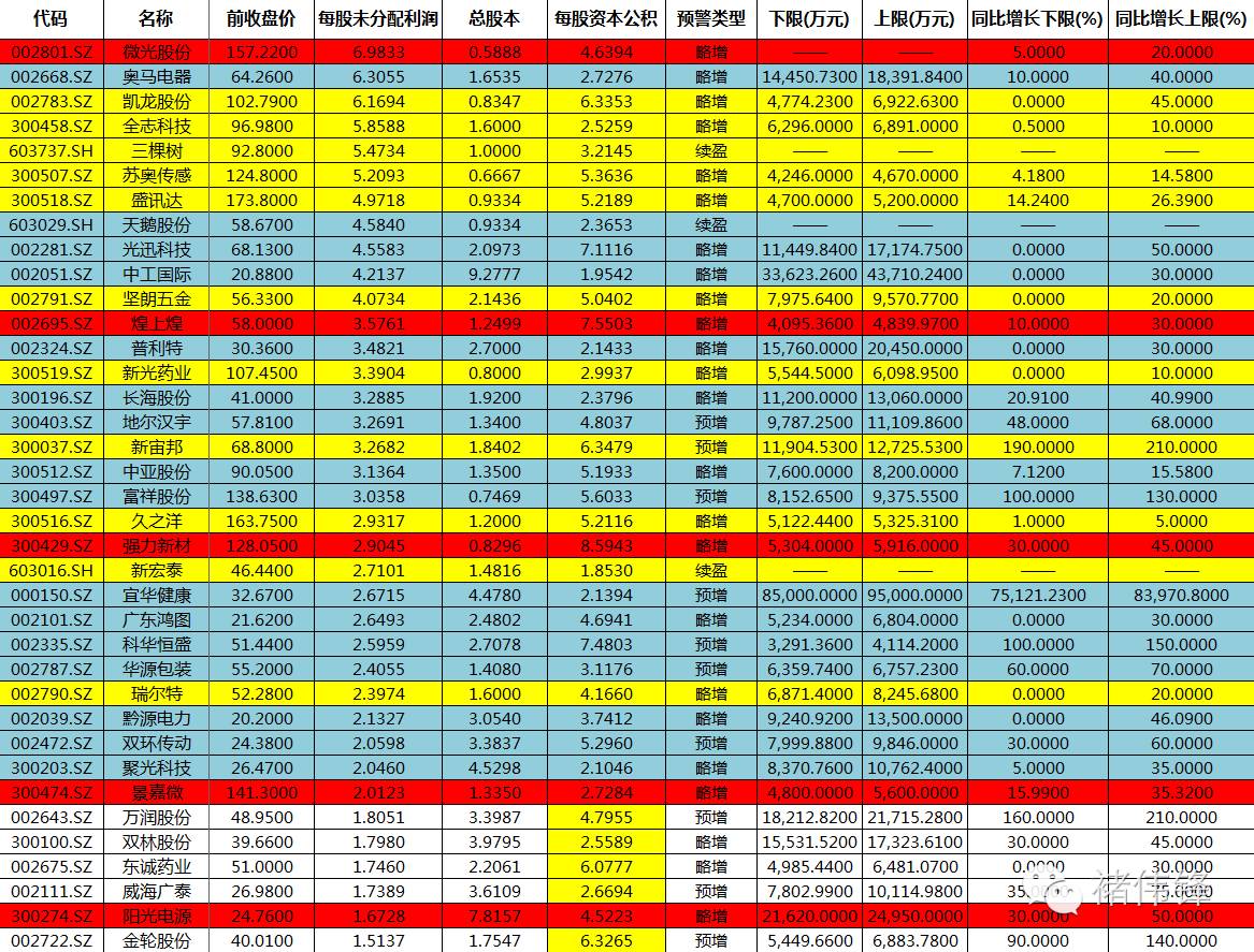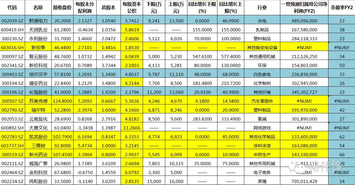 并且将已经高送转的排除后,还是剩下19家,其中标颜色的是值得重点关注的: