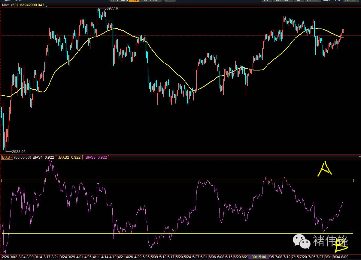 上图是60分钟上证走势。 这波其实走势比较强,我们通过BIAS