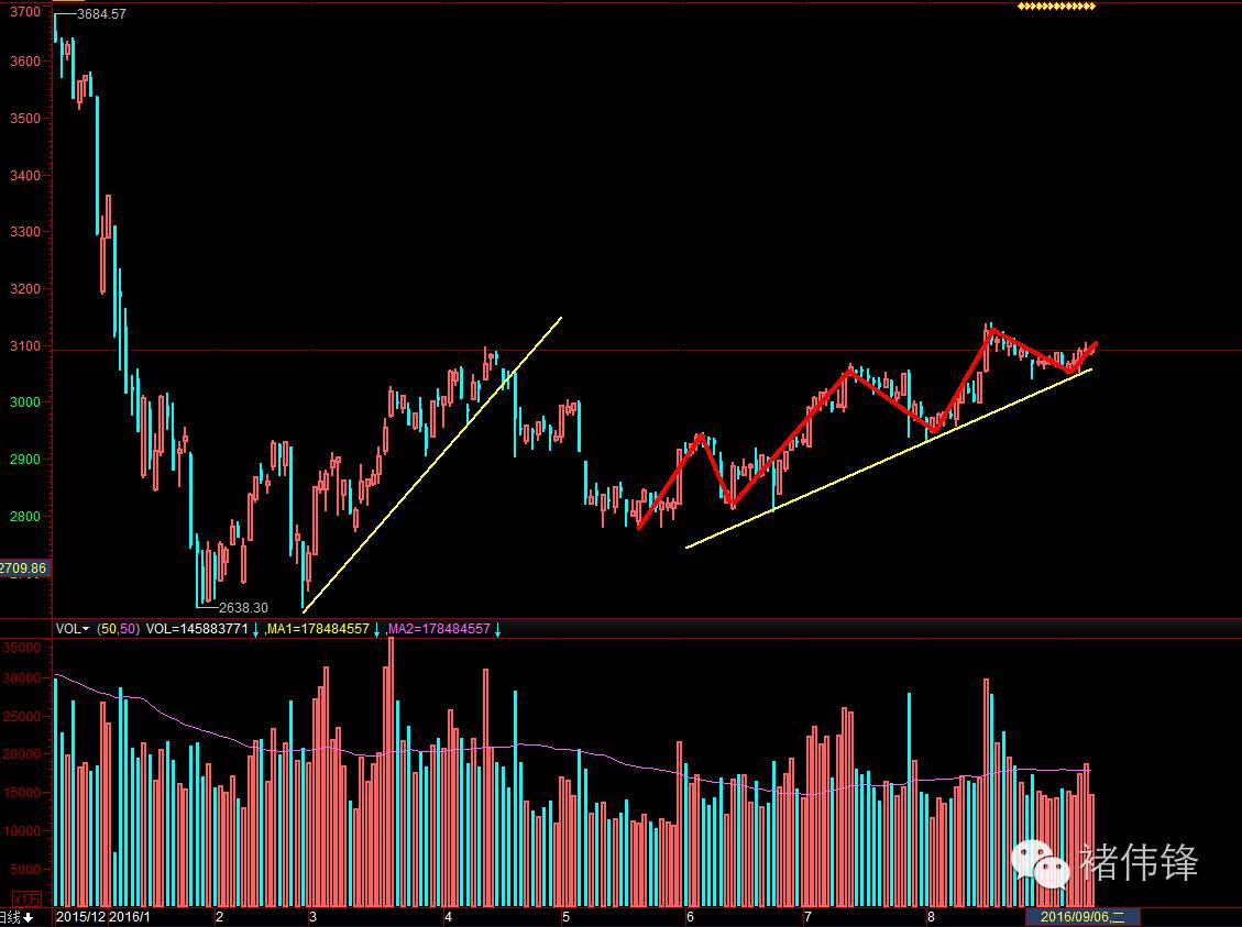 论上升通道,那个趋势线特标准。 论上升结构,那个一笔笔结构走的特好看,头是头,底是底,逐步上移,好似教科书一般。