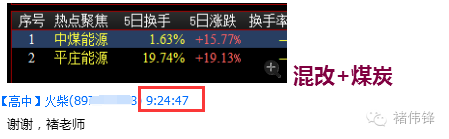 今天早上给学员发的,混改 煤炭,就两个——中煤能源和平庄能源,也是今天最强的票。 光从煤炭来看,我之前想的是业绩弹性,但是发现现在是双题材混合,才是最强,和业绩没有太大的关系。