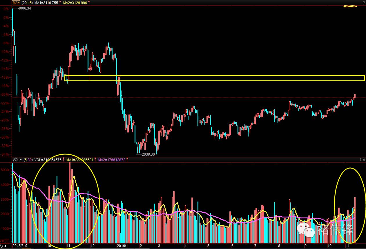 他前有第二轮股灾,然后是一波4个月反弹,再来个第三了熔断式股灾,大量筹码因为熔断而无法出逃。 在这里的套牢盘非常多。