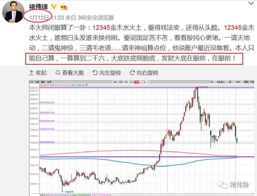 我上次算命,也是在3000点,只不过那时候是牛市暴跌的股灾中,1月12日,我算了个2600点的低,称之为“算命底”。