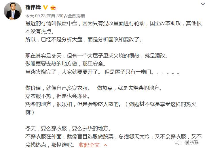 下面这段话,是我微博发布的,是个不错过当下行情形容: