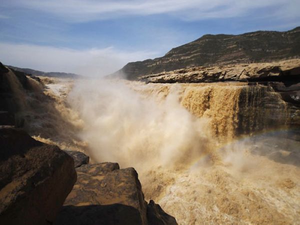 黄河湍急收壶口,顿起惊涛瀑布流。