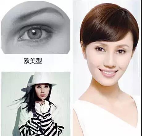 4、欧式双眼皮比较适合颧骨和眉弓高的人,显得高贵典雅。有些姑娘成天嚷嚷着要做欧式双眼皮,你可得长点儿心,欧式双眼皮偏平行,很宽但不是很深,只有睁大眼睛的时候才有略微的凹陷,比较隐型,感觉很忧郁,非常的立体有型,不过这种双眼皮比较适合颧骨较高,长相比较西方化的人,要是一张扁平的大脸配上一双欧式双眼皮,只会让人感觉不协调。