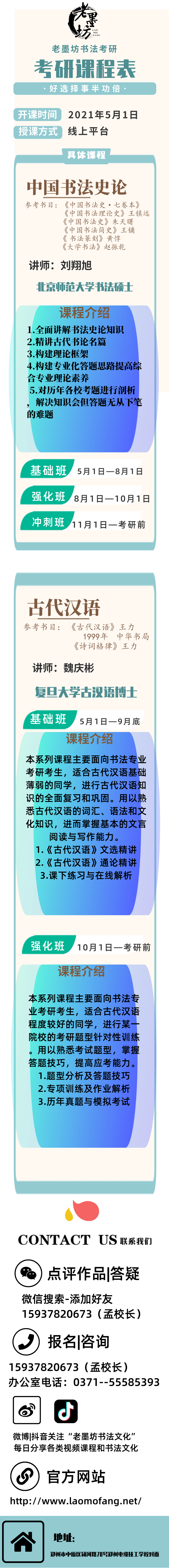 https://mmbiz.qpic.cn/mmbiz_gif/JWNkicfNibFPBxTyibG7ZrQ34VFKQworxQAkCt1yCNCn2qlHibCUzB0PiaJKYTj3YzD04GeGVzqy4GIibV1Bz9poEepQ/640?wx_fmt=gif老墨坊书法考研项目成立于2014年,自成立之日起,历届郑州大学、河南大学等考研第一名均出自老墨坊。