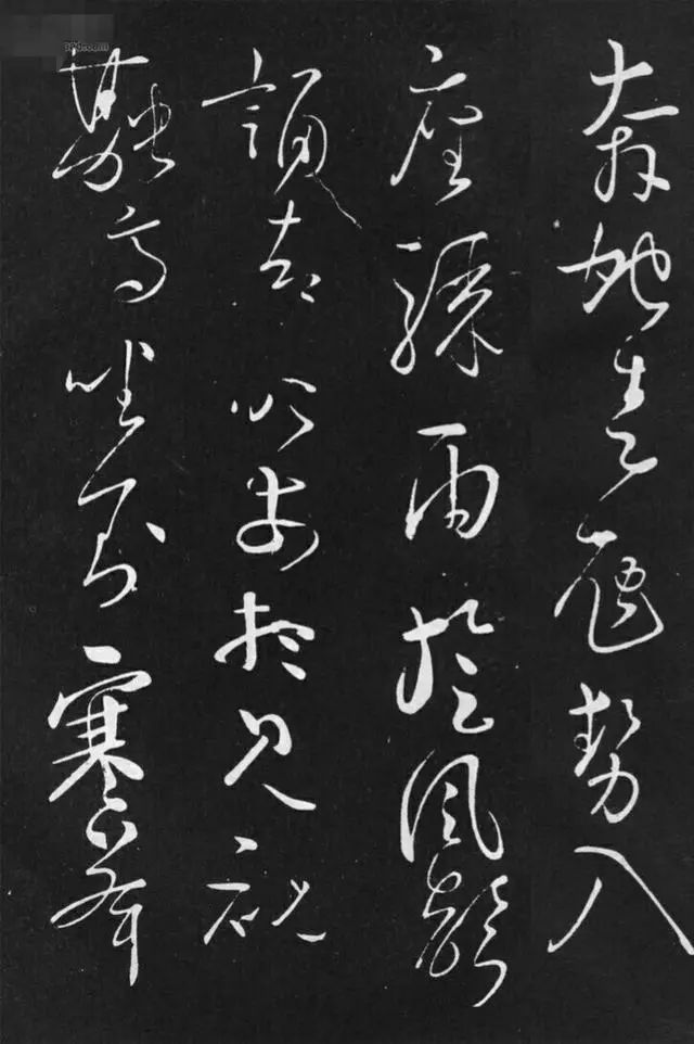 怀素的草书称为“狂草”,用笔圆劲有力,使转如环,奔放流畅,一气呵成,和张旭齐名。