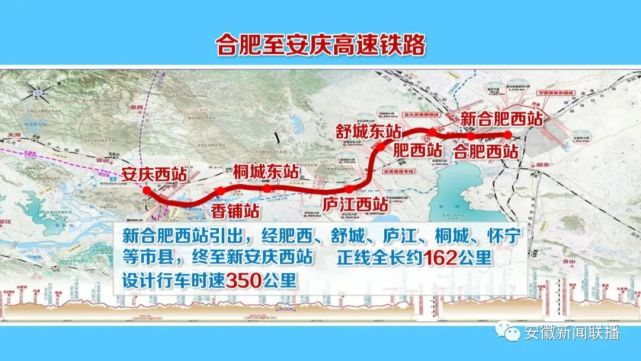 县,终至新安庆西站,正线全长162公里,设计行车时速350公里,共设7个站点。建成后,不仅合肥到安庆的时间,将由现在的2