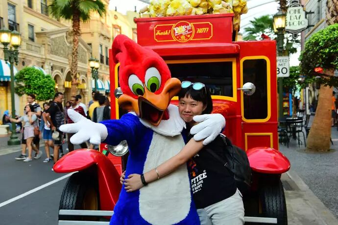 来到新加坡环球影城,一定记得要带好自拍杆,随时准备着遇到你喜欢的明星,然后和他们在街头店里合影。