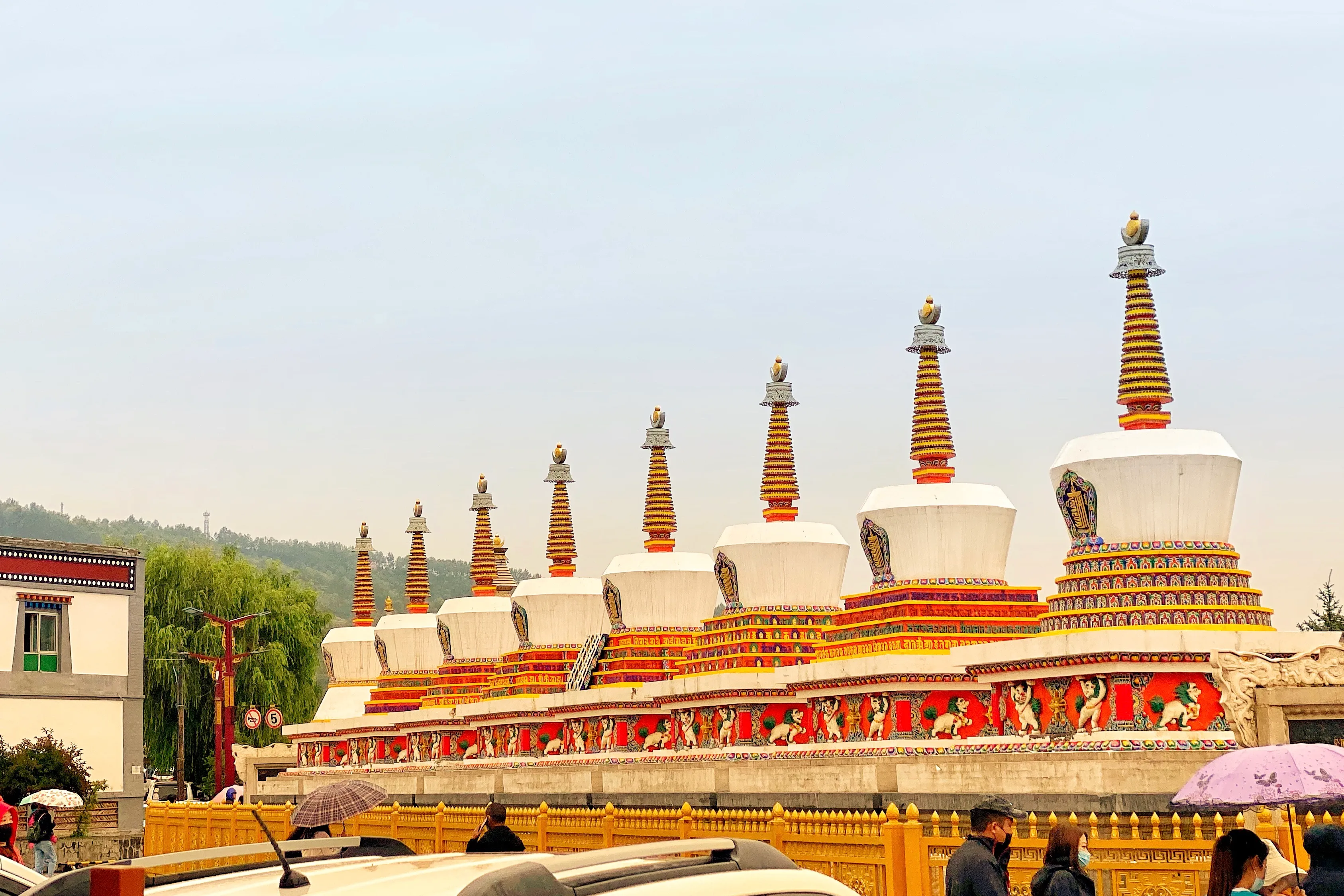 塔尔寺内的各个寺庙都是不允许拍照的,一般游客都会在八宝如意塔、白塔等地留影。去塔尔寺这样的宗教圣地,最好不要穿短裤,女生不能袒胸露背,简单平常的着装就最好了。我们去的时候,正好遇到淅淅沥沥的雨,所以也基本没有拍人像照。最后出门的时候,可以去纪念品店请一个藏有经书的转经筒挂件,据说它们都是大师开过光的。
