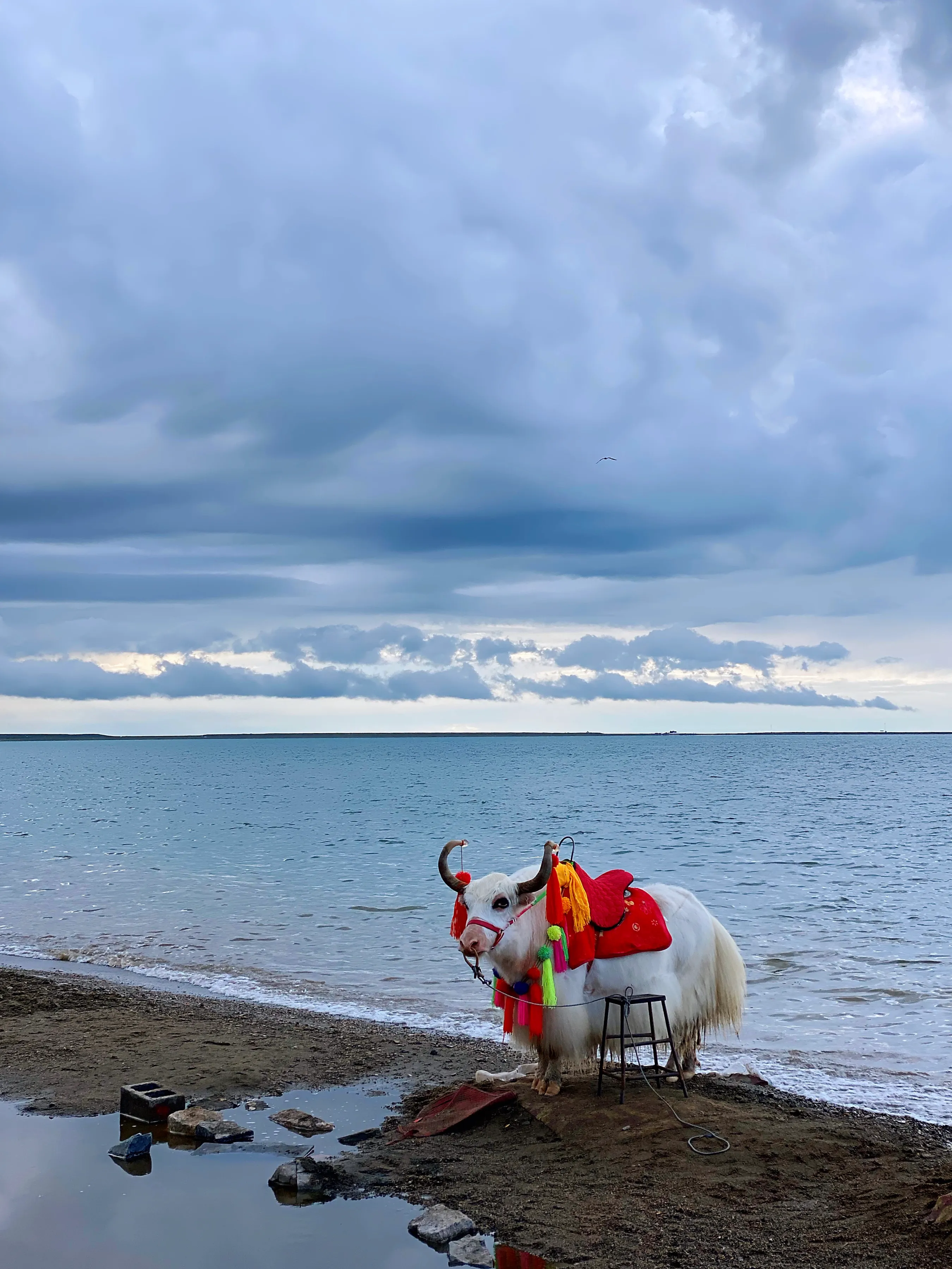 在青海湖边,我反而觉得人太多,只能拍些景了。湖边有好多当地人,占着最佳位置,摆上透明的桌子、椅子、摇篮、红酒之类的,招揽游客付钱拍照。当然,如果人少可以试试,他们还用各种拍摄道具,活脱脱的把青海湖打造成了“网红湖”。 当然,如果能来一张青海湖的航拍,那真的完美了。