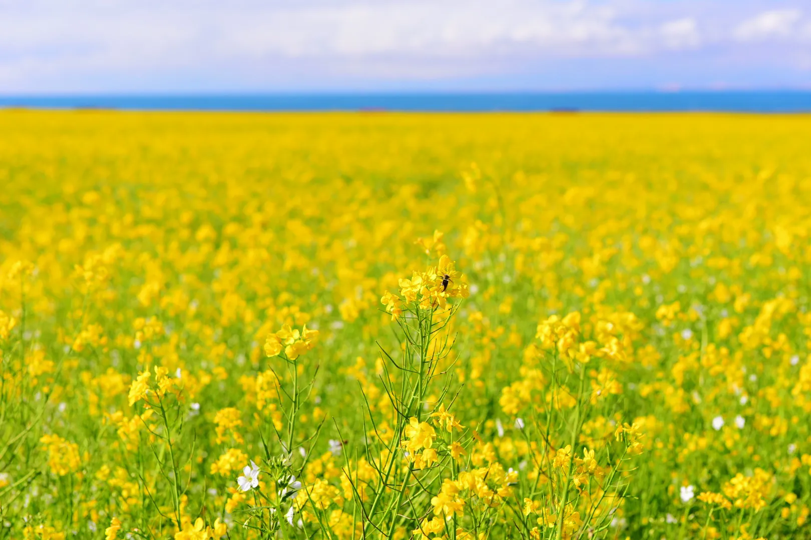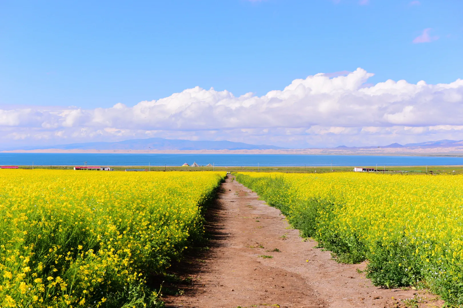 青海湖,藏语名为“措温布”意为“青色的海”,是中国最大的内陆湖。每年的7-9月是青海湖最美的时候,金黄的油菜花在湖边开放,湖水浩渺泛着微波。青海湖是西北青甘大环线出西宁之后第一站,当一大片黄色花海跃入眼际,我们就被这样的美惊艳到了。
