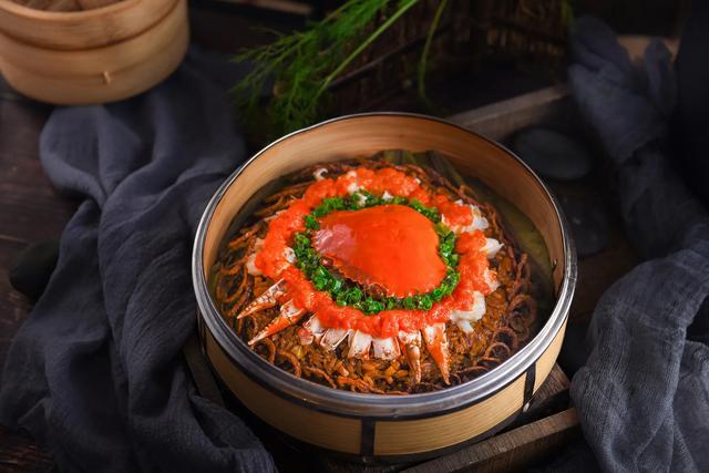 和乐蟹蒸米糕:作为闽南一带的特色菜品,董师傅精选瑶柱、火腿、虾米、板栗、莲子等南北食材佳品,配以糯米炒香,再将整只和乐蟹切块,均匀铺在八宝米饭上一起高温蒸制,使蟹的鲜美与糯米饭的香糯融为一体,汁浓味厚,深受广大食客的推崇。