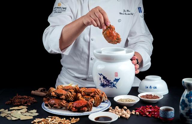 南京香格里拉大酒店江南灶名厨侯新庆师傅,倾情出品的第四季“寻蟹季”晚宴,9道菜皆用高邮湖“王鲜记”的大闸蟹打造,每一道菜不仅是可以欣赏品味的精美艺术品,更是让人欲罢不能的超级美味。
