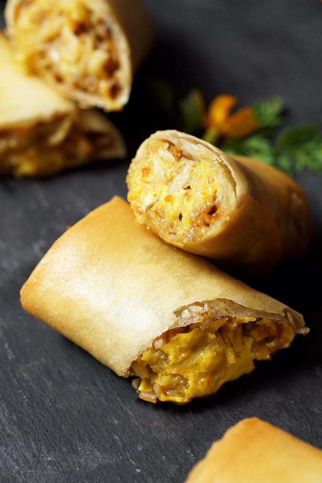 黄鱼蟹粉春卷:高师傅遵循淮扬菜“因时而异,不时不食”的特点,选用应季滋补食材黄鱼与膏肥脂满的大闸蟹相结合,配以传统的烹饪手法,将这一季的美味发挥得淋漓尽致。黄鱼去骨切丝与蟹粉和韭黄融合,外面包裹上薄如纸的春卷皮,经油炸过后色泽金黄通透。一口咬下,清爽、柔滑、酥脆同时迸发,萦绕在唇齿之间久久不散。