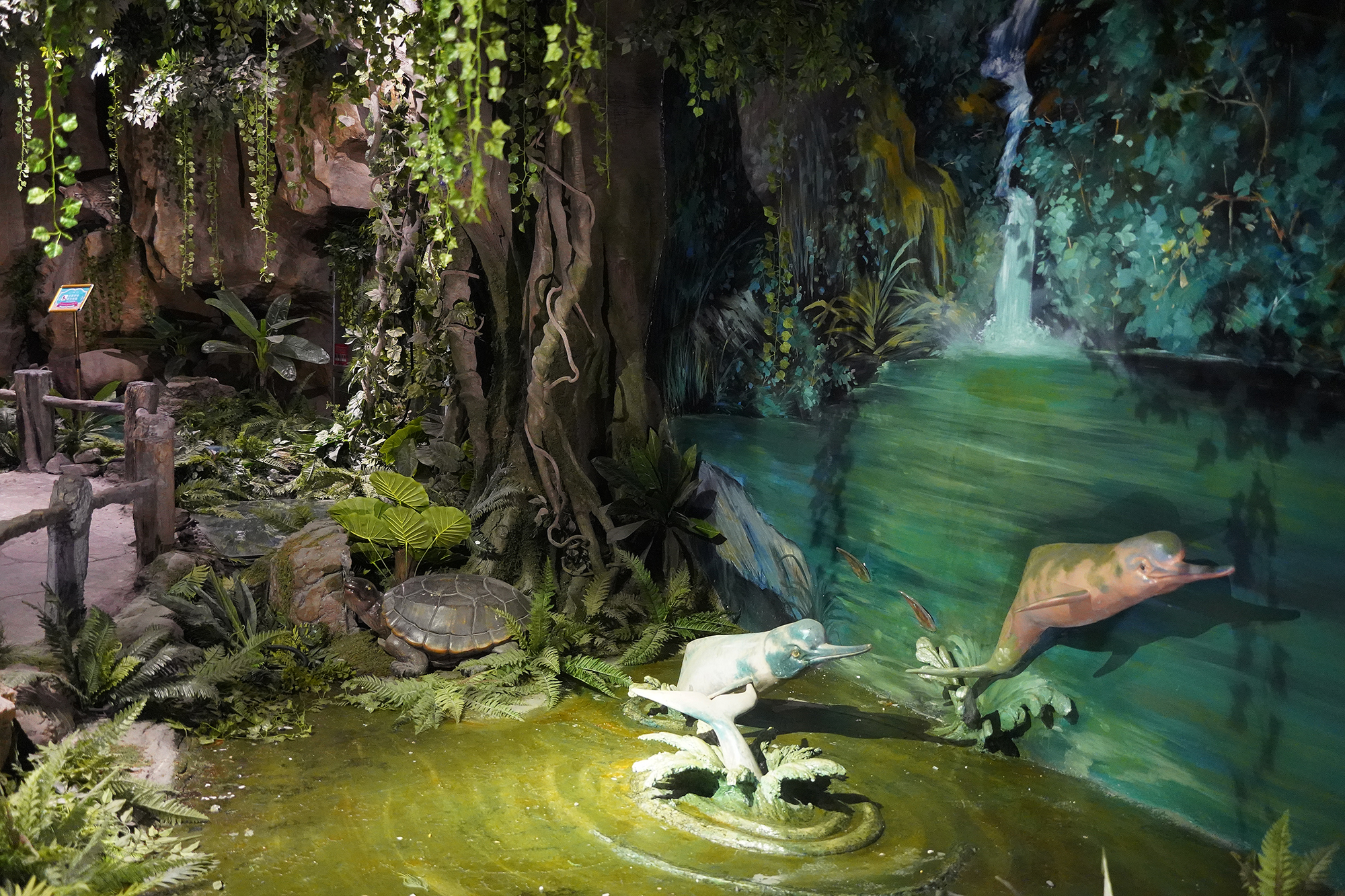 你还可以走进地下,去探索奇妙的热带雨林、动物世界和地下晶窟。