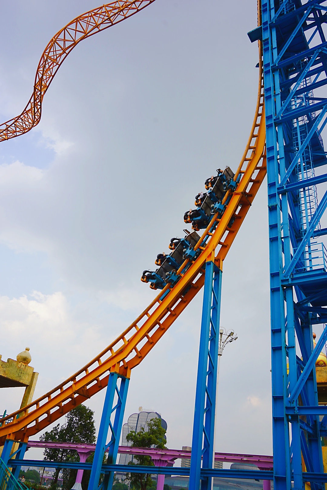 酷玩世界有四个挑战的项目:【超级摆锤】【高空飞塔】【垂直风暴】【双龙竞速】都特受到玩家追捧,让肾上腺素飙升,一定要去感受一下的。虽然这些项目,有的在别的乐园也是玩过,但是这么多酷炫的刺激项目在同一个区域,不用步行太远,省去了很多体力,还真是难得。