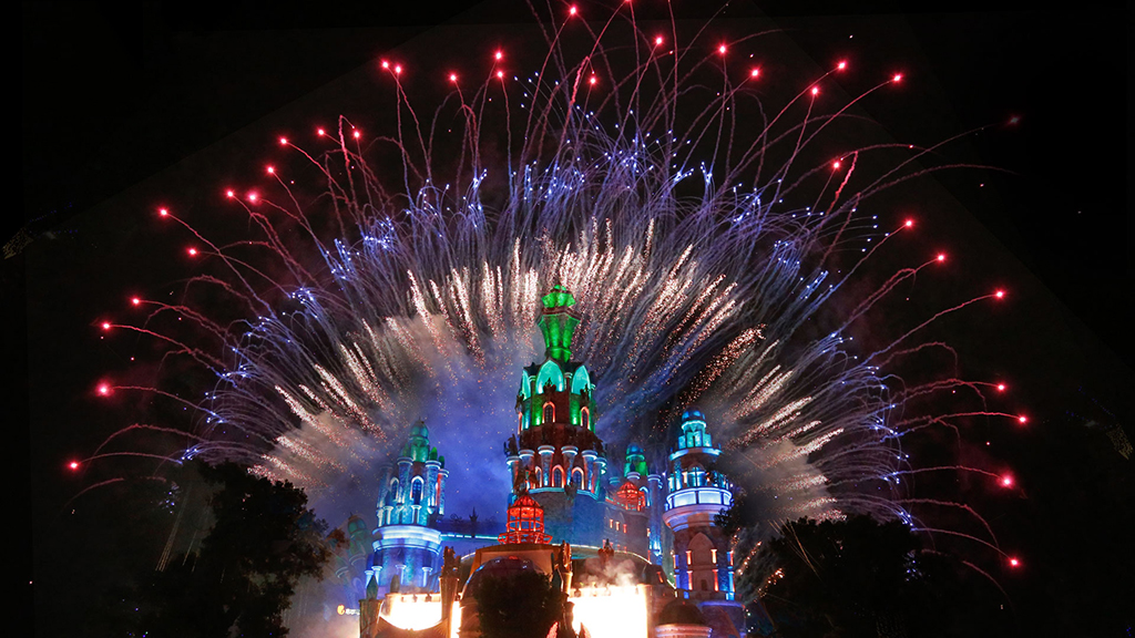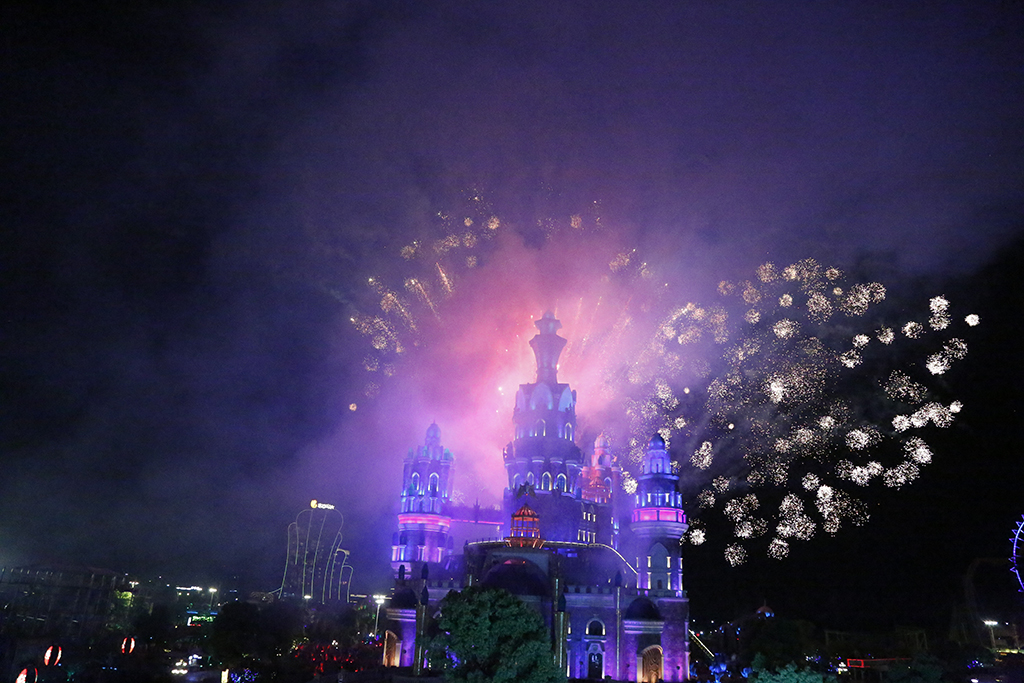 我是偏爱各种比较挑战的游乐设备,所以一进门就先去了水晶城堡,水晶城堡应该是整个酷玩王国的核心,白天是高不可攀的城堡,夜晚这里成了烟花的世界。