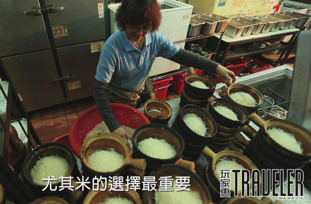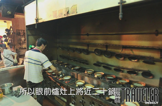 好的煲仔饭烧锅边都是焦黑的,看得出来是用了很多次,感觉的出那个镬气。因为煲仔饭的火候很重要,煮的好那饭焦才会出来,所以那个砂锅就很重要。砂锅因为有气孔,煲熟之后放在炭火上烤,那炭的味道就会渗进去,就会比较香。一锅煲仔饭的成功与否,全凭烧锅师傅的经验判断。眼前炉灶上将近二十锅,每一锅的分量,时间跟温度都要算好,一闪神,可就会坏了一锅饭。