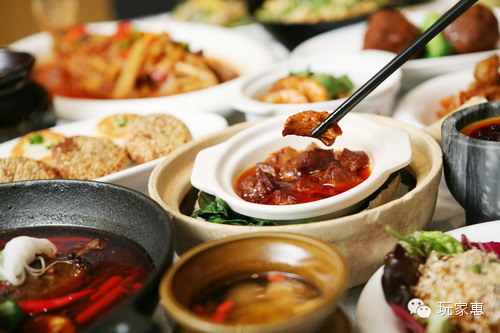 餐厅由日本著名的室内设计公司SuperPotato担纲设计,最有特色的是这里有开放的分区厨房,看到厨师随意取用架上一排排的香料和蔬果,才明白原来那不只是装饰,而是真实的烹饪用料。最新一季的自助餐主推由新鲜的蔬菜组成四季大拌菜、秘制的豆豉虎皮凤爪以及老北京红油芝麻鸡,还有川香青口贝、金蒜烤肥蚝、干锅带皮黄牛肉等30多道、选用上好食材创意烹饪的美味热菜满足大家的口腹之欲。如果觉得还不够,来上一套限量半价烤鸭,仅100元,绝对超值。