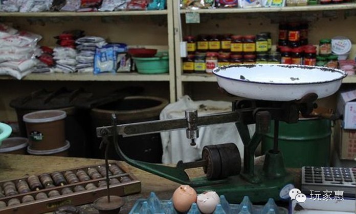 不仅卖的东西让顾客很是惦记,副食店整体的氛围也让不少顾客着迷。李瑞生说,副食店内的格局和用具从1956年就没变过,只不过比原来面积缩小了一些。店里称重用的台秤、算账用的算盘都还保留着。店内的深棕色木制柜台以及3口分别盛放散装酱油、醋、黄酱的大缸,在1956年该店开张时便有。