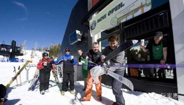 美国加州的斯阔谷滑雪度假胜地(SquawValley Resort)里就开有一家星巴克,不过它可不是在山脚下哦!而是在海拔8千英尺(约合2438米)的半山腰上!