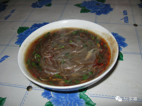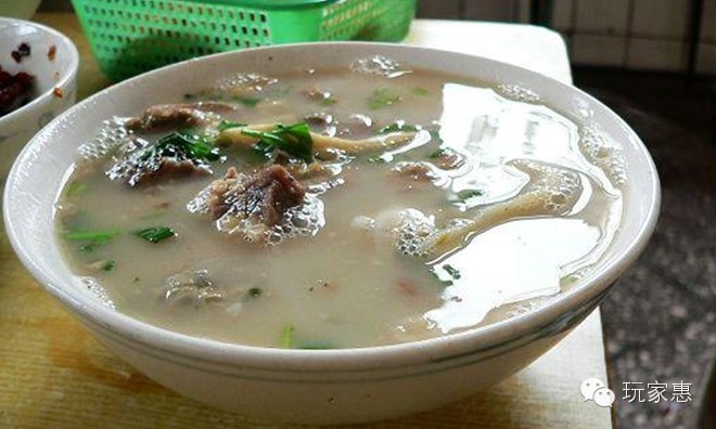 在西北角欢庆西胡同的清真南大寺附近,天还没亮,老板就开始准备转天的粉汤汤底,姜块儿在热油中翻滚,变成金黄色,散发着特有的香味,加上葱蒜等熬制,最后加入酱油等调味料。经过熬制的汤底不但味道丰富,颜色也好看。吃粉汤有个不成文的传统,那就是桌子中间不能空,必须有油饼和一些小菜来配粉汤,这就像油条配豆浆一样,是“黄金搭档”。先盛泡好的粉丝,放到碗中,浇上汤汁,撒上韭菜虾皮,淋上香油,那味道十里飘香,再倒些醋,这样汤汁的味道会更富有层次,且抵消些油腻感。吸溜一口粉丝,口感软硬刚好,再喝一口汤,浑身温暖。