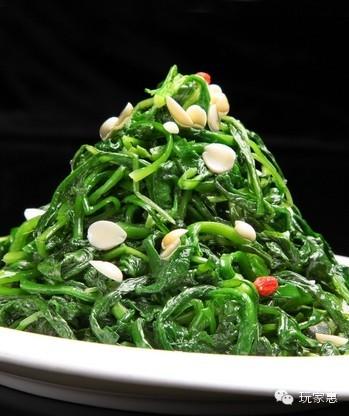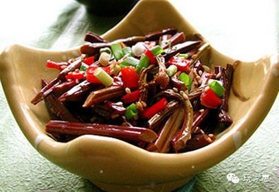 蕨菜: 有安神作用蕨菜又名蕨儿菜﹑龙头菜,在野菜中比较常见。蕨菜叶是卷曲状时,说明它比较鲜嫩,老了后叶子就会舒展开来。吃蕨菜能起到清热滑肠、降气化痰、利尿安神的作用。但干蕨菜或用盐腌过的蕨菜在吃前最好用水浸一下,使它复原。常见的吃法有滑炒脊丝蕨菜、蕨菜扣肉、凉拌蕨菜等。