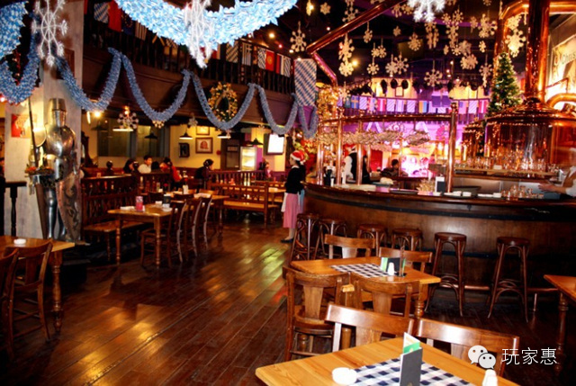 皇冠自酿啤酒坊是北京唯一一家体验巴伐利亚自酿啤酒文化的传统德国酿酒餐吧,餐厅装修的很有德国啤酒屋的感觉,武士的盔甲、木质的桌椅、酒红色做旧的吧台,让人进一步领略到日尔曼民族的奔放与豪爽。各种啤酒都是自酿的,味道醇香爽口。猪肘、香肠、土豆泥、酸菜让人回味无穷。