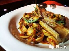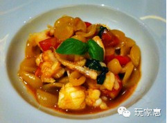 位于古北的黄金城道上的唯美意式餐厅,独具浪漫情调。长管面烩传统那不勒斯猪颈肉酱绝对是招牌,搭配番茄,罗勒叶,茄子及鲜奶酪,酱汁味道很特别。这是整个魔都只有三家店才有的正宗意大利长管面,不可错过。