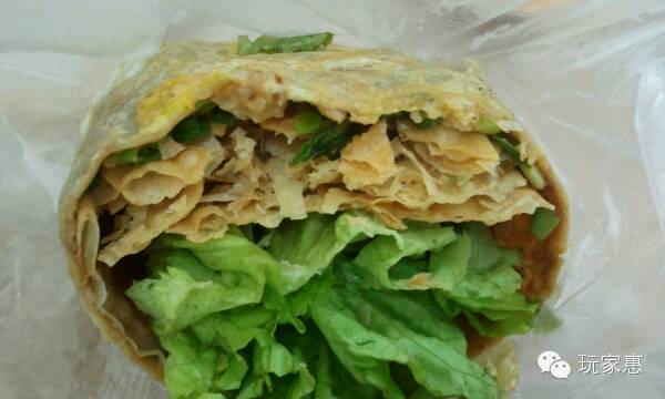 这家的煎饼,饼皮薄、酥,脆饼很酥脆,不会因为热蒸汽而软掉,依旧口感超好,配料也很丰富,加了花生、芝麻、香菜、生菜,大葱白、腐乳、甜面酱,综合口味真是一级棒!一个饼超级大,早晨吃得晚可管一顿早午餐了。