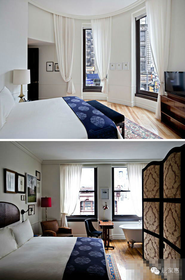 NoMad酒店位于纽约麦迪逊广场花园北部的一幢有百年历史的Beaux-Arts风格建筑里,占地133,000平方英尺。该地标性建筑计划打造成为一家巴黎生活方式的奢华酒店。NoMad酒店的室内设计由法国著名设计师Jacques Garcia操刀,将欧式古典奢华风格与现代都市生活方式结合起来,典雅中透露出轻松的家居氛围。 这家美丽的酒店拥有着经典法式装饰的客房。