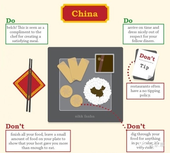英国RestaurantChoice网站以资讯图表的方式来分析一些国家的用餐习惯,以Do和Don’t来告诉大家一些用餐小知识。