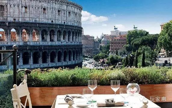 从罗马曼菲蔕宫酒店的佛罗伦萨餐厅看罗马斗兽场,斗兽场就近在咫尺,你甚至感觉你可以轻轻弹去上面的一片橄榄叶。该酒店有 15 个优雅的房间和套房,壮观却不失温暖。佛罗伦萨餐厅正是你穿上美美的礼服享用晚餐的地方,任何人都可以在这里体会到优雅。冬天可以在玻璃的环抱中用餐,其他季节户外就餐是不错的选择。