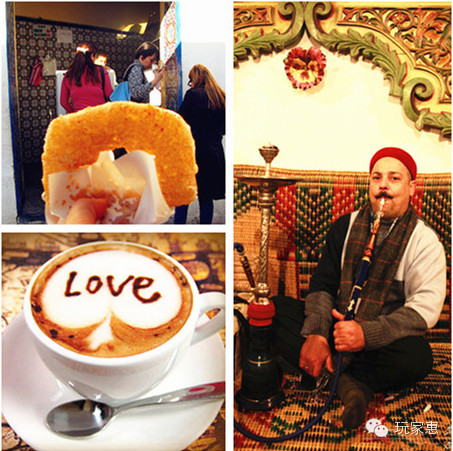 在蓝白小镇必做的三件事:品尝着突尼斯咖啡,欣赏地中海风光;尝尝街头小店的炸面圈,是比较容易驾驭的味觉体验;在“草席咖啡馆”喝杯薄荷茶,再试着吸一下突尼斯水烟,体验吞云吐雾的异域风情……这三大组合真的很疯狂!