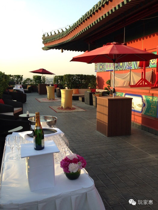 具有皇家气质的一家酒吧,酒吧的入口处配有一只琥珀色的大印章,以及多款超大型号的毛笔。在这里除了有私密优雅的室内空间,其屋顶天台也独具特色,当属北京高端豪华酒店中规模最大的天台之一。夏季开放后,即可在东侧天台享用生鲜啤酒与烧烤美味,又或在西侧天台尽情享受闲情雅乐。各种年份的香槟、各产区葡萄酒、上好的单一麦芽威士忌,坐在露台上边饮酒边欣赏故宫天坛的美景,十分惬意。