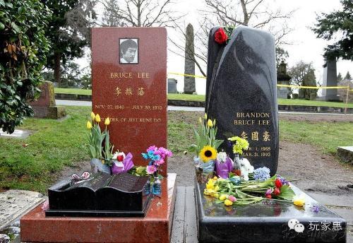 李小龙墓碑指引:进入公墓之后,往右转上直坡,在经过一个摆放骨灰的白色小屋以后,向左转的一个圈形走道的右侧背面。有点难找,也稍有点远。