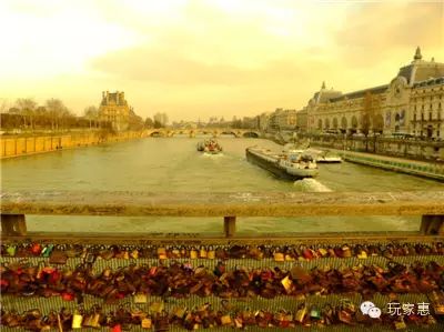浪漫的巴黎到处洋溢着爱的气息,来自世界各地的情侣们漫步在巴黎街头,细细品味洋溢着这座城市的浪漫感觉,或是以各种方式见证他们的爱情,在横跨塞纳河的艺术桥上,就被情侣们挂满了见证爱情的爱情锁。