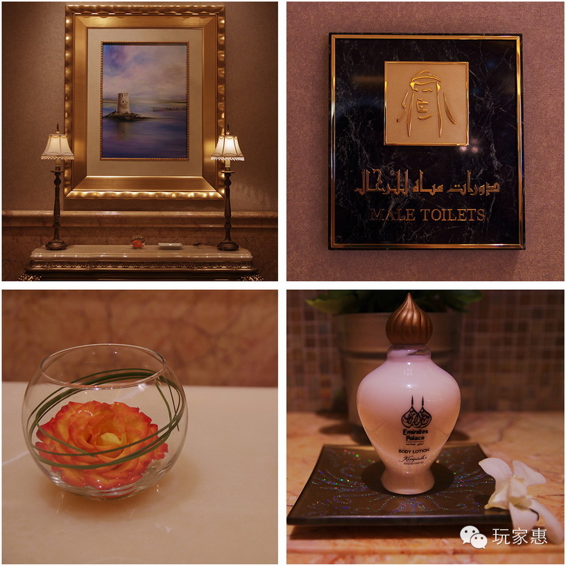 八星级的洗手间当然卓尔不群,首先指示牌是用镶金大理石制作,一开门就能看到赏心悦目的油画,洗手池旁摆放着国际知名品牌Kempinchi为皇宫酒店专制的护手霜。