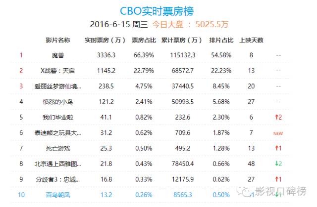 我们观察今日的票房,今日大盘5025.5万,魔兽独占3336.34万,票房占比高达66.39%,似乎很有看头,但相比前几天还是单日票房3亿,几天内回落到只有十分之一,不禁让人唏嘘。这几天网上疯传《魔兽》在中国五天逼近十亿元人民币票房(1.6亿美元),在北美却只获得2400万美元,中国票房约是北美四倍,这差距不禁让人感叹:《魔兽》是为中国观众独家订制的吗?