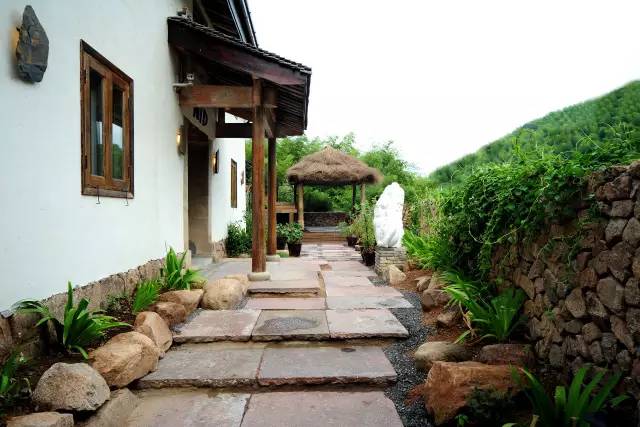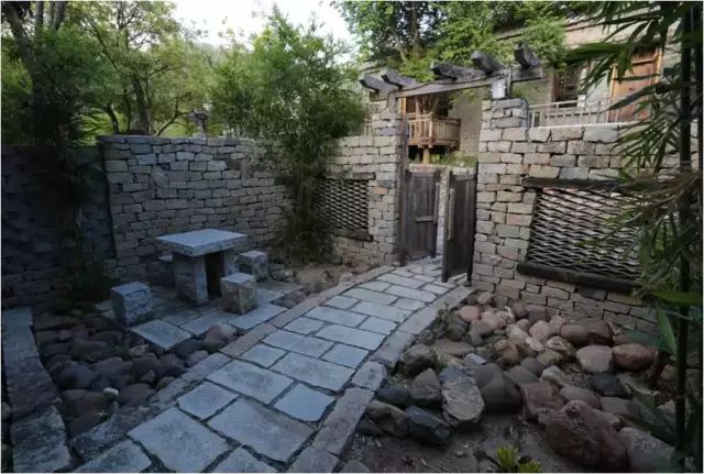 门前有石阶,是用有纹理天然石块的削成。种一些野花草在石阶缝隙内,取带有苔藓痕迹未经斧凿的石块砌成围墙,这样便有了山谷间的风味。